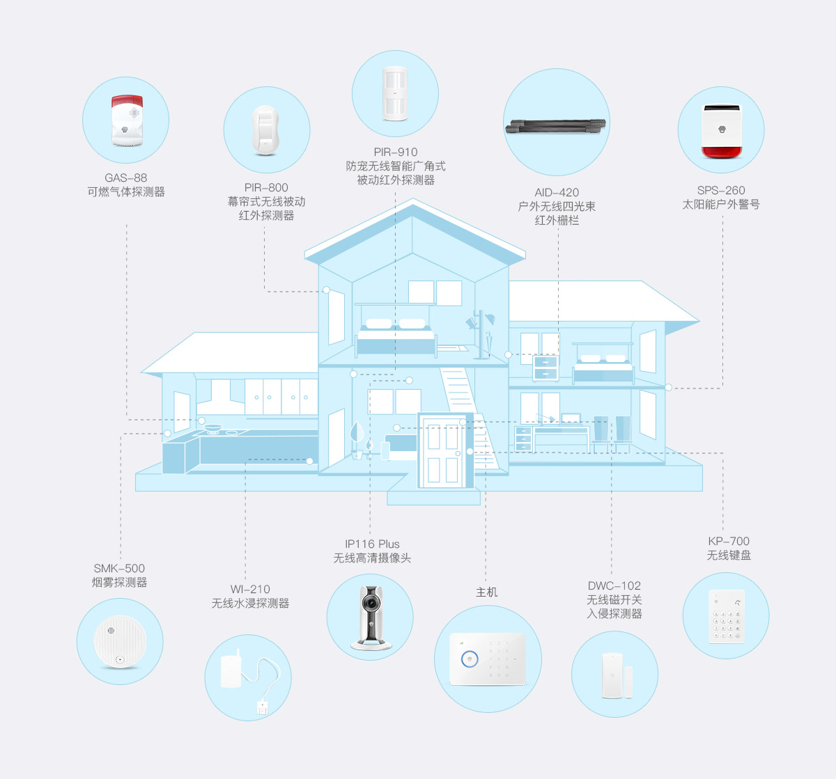 • 可擴(kuò)展無線配件數(shù)量10個(gè)遙控,50個(gè)探測(cè)器,50個(gè)無線射頻卡